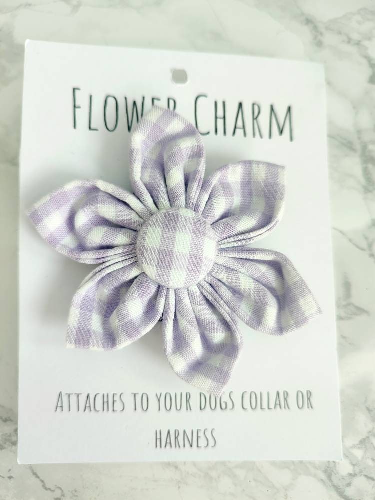 This Gorgeous little flower is made from the Lilac gingham cotton fabric. It features 6 petals and a covered button in matching fabric.