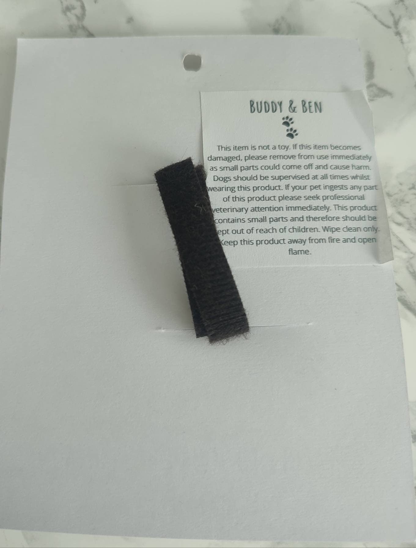 A felt backing with a single strap approx 14cm in length allows the flowers to be attached to collars of varying widths as well as harnesses.