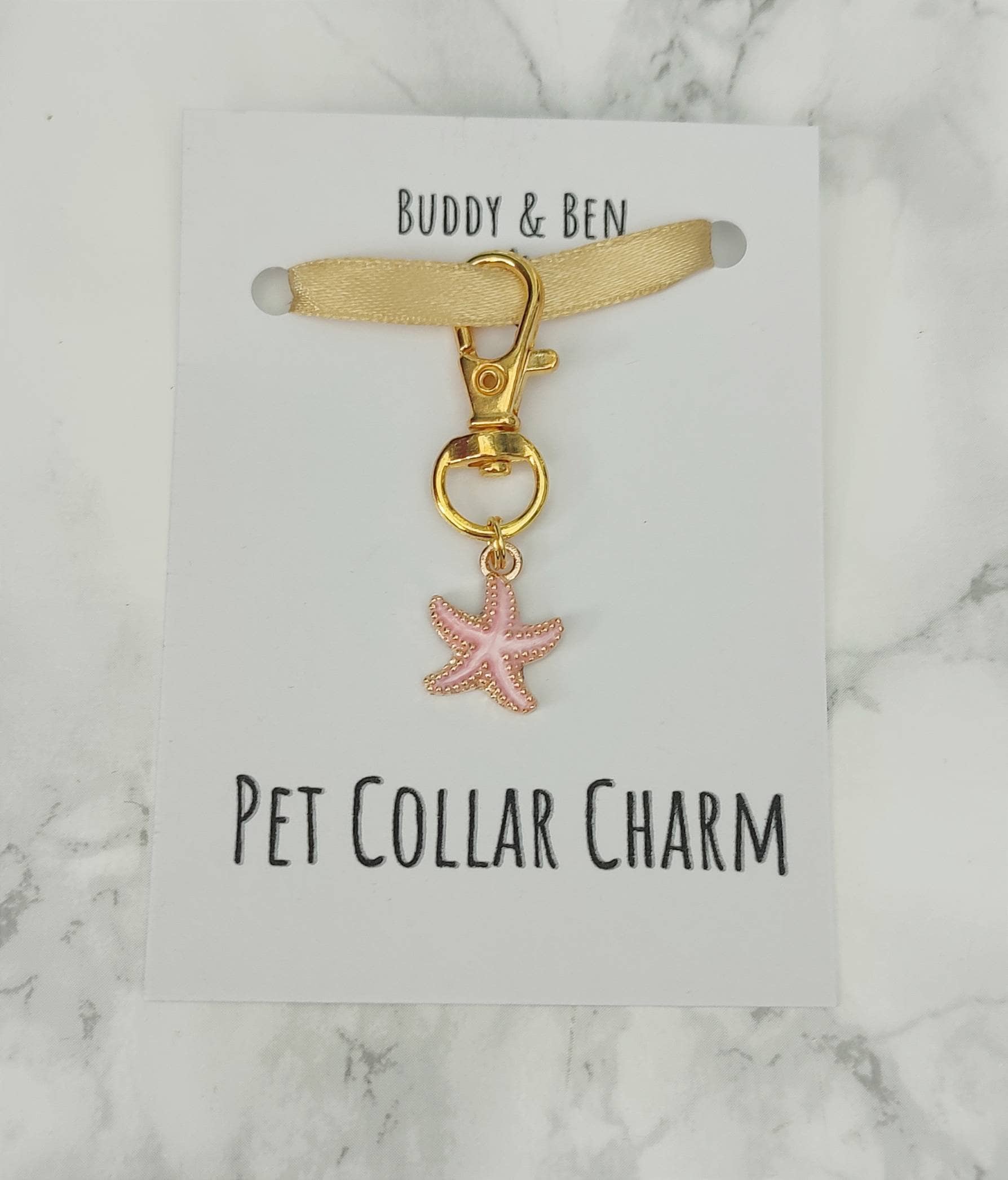 The Starfish pet collar charm features one pink and gold starfish enamel charm, perfect for the pooch who loves t get their paws sandy.